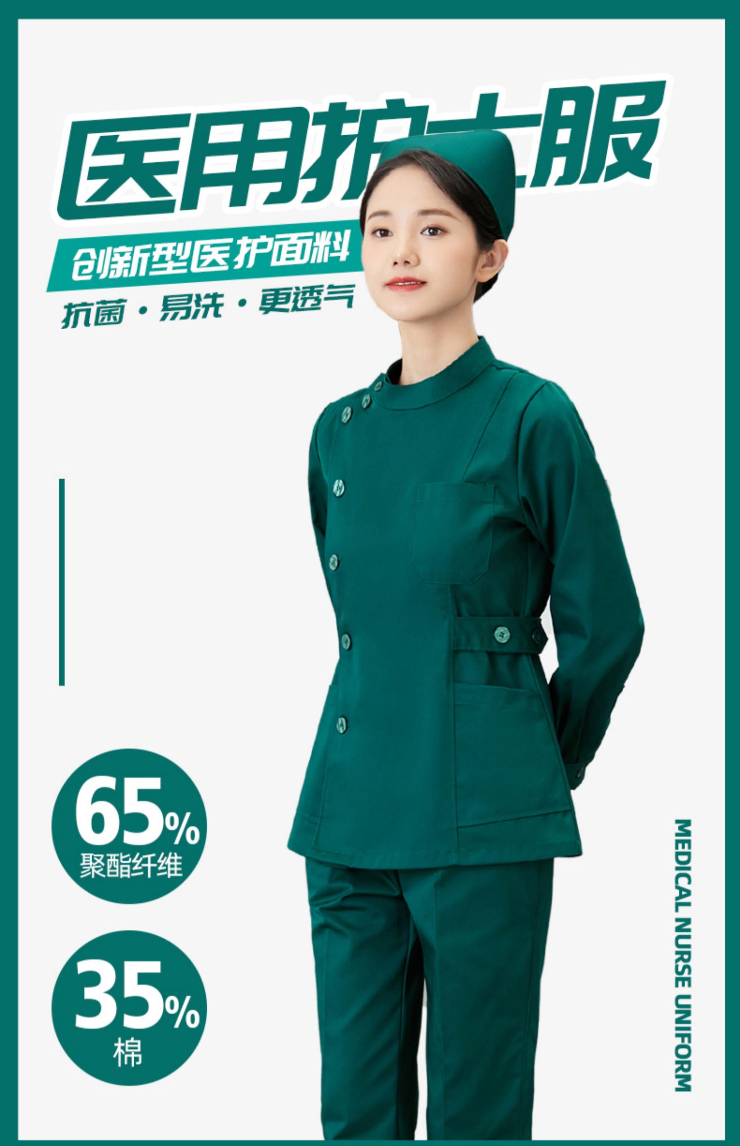 护士服长袖女短款分体套装墨绿色血透手术室巡回外套急诊科工作服