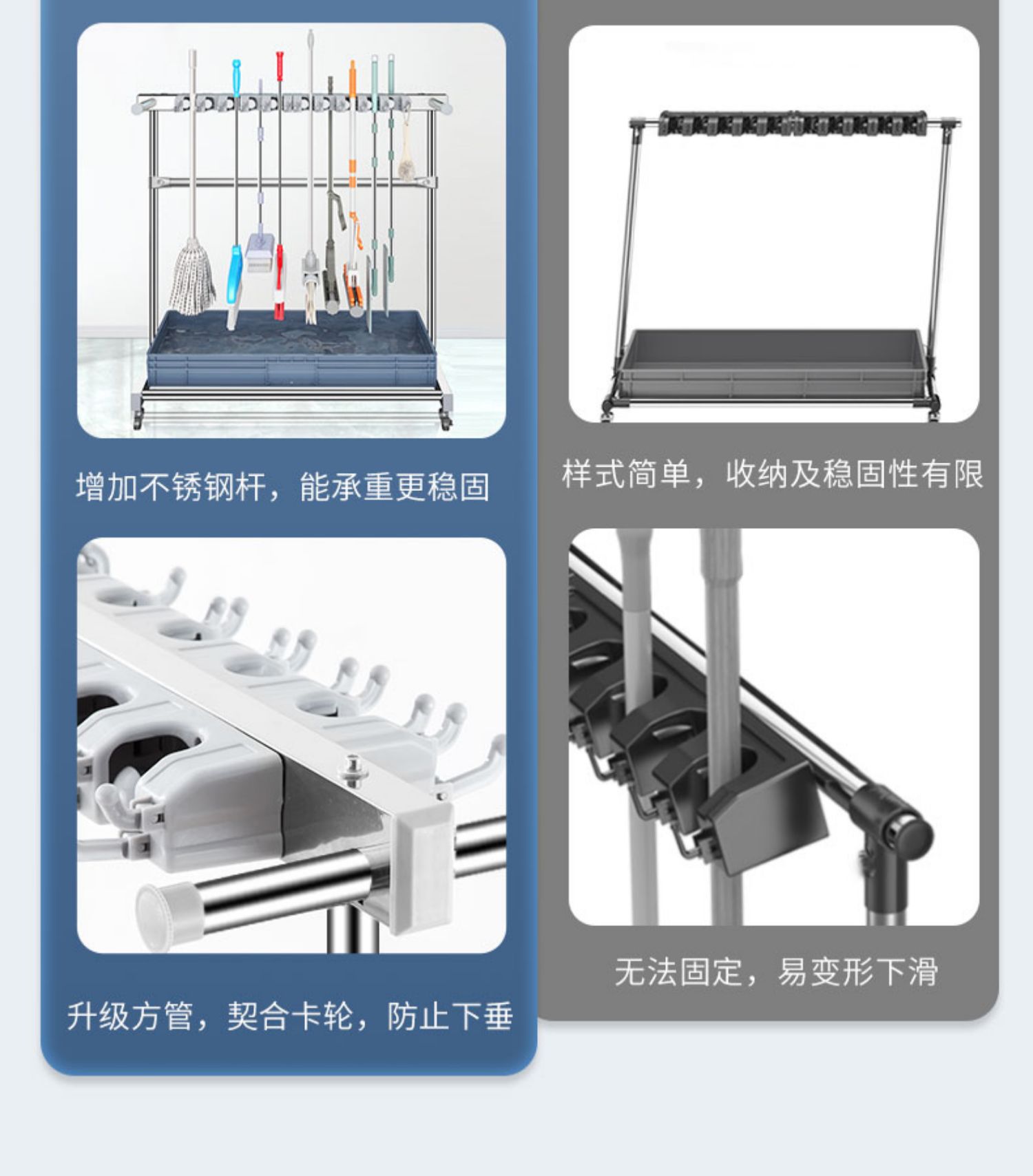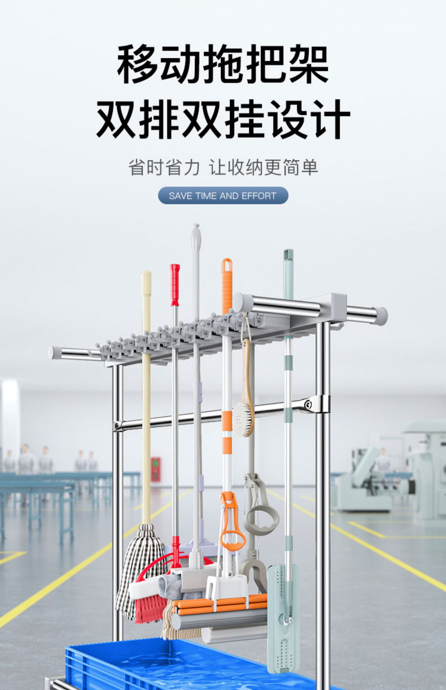 移动落地式拖把架商用不锈钢置物架墩布扫把架清洁工具收纳扫帚夹...